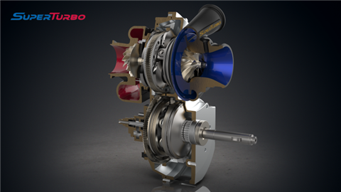 The SuperTurbo, is an ‘on-demand’ air device that can be used to control the speed of the turbomachinery independently of the engine’s exhaust flow and vary the relative ratio between engine speed and turbo speed. This is accomplished by utilizing mechanical components to either add or subtract power from the turbocharger shaft. The SuperTurbo employs a speed reduction fixed ratio planetary drive coupled with a continuously variable transmission. The result is an increase in performance and efficiency, the companies said.
