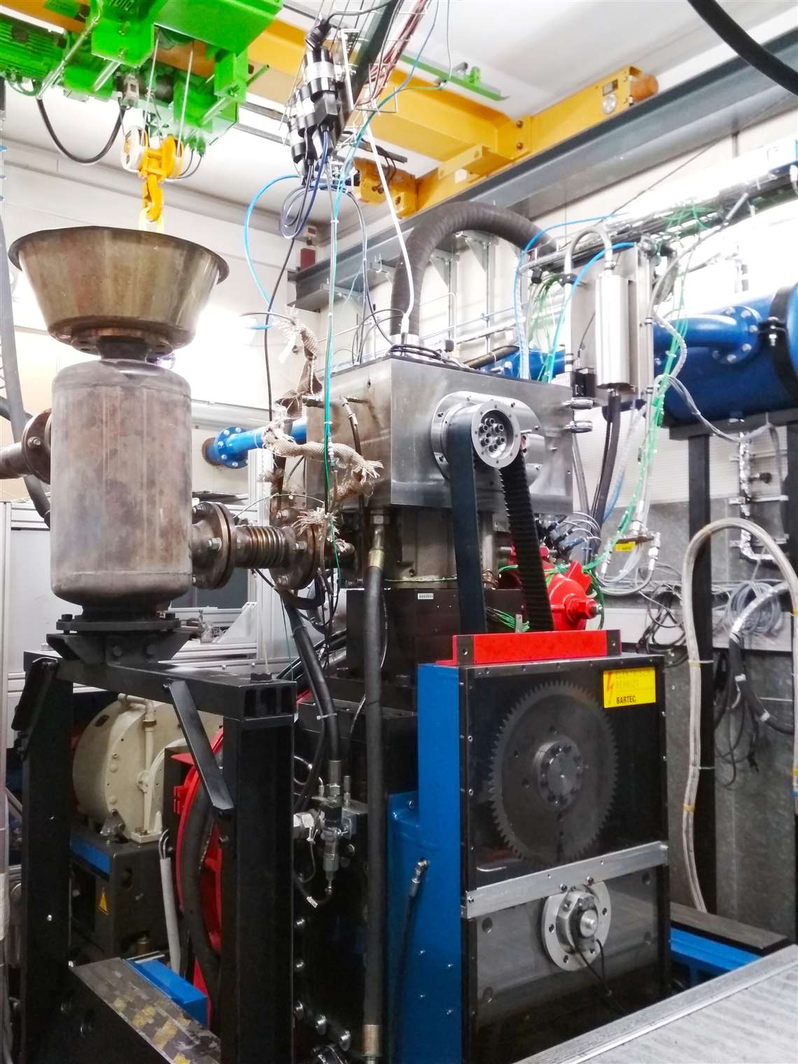 To study these effects more in detail, test bench setups, like this 4.77-l single-cylinder research gas engine of the Chair of Internal Combustion Engines (LVK) of the Technical University of Munich (TUM), are a valuable option. This engine was developed at TUM based on the cylinder head and piston of an industrial gas engine. To implement combustion processes with high peak combustion pressures of up to 300 bar, the crankshaft, piston rod and bearings have been revised and reinforced. Numerous research tasks concerning engine and emissions performance have been successfully carried out with this engine.