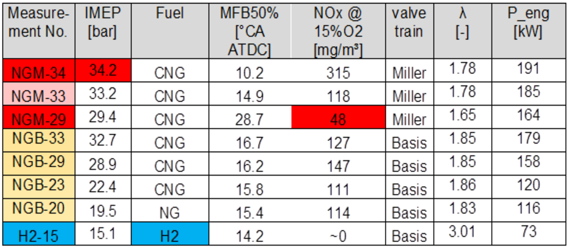 Figure 2: Measurements with different fuels and engine settings