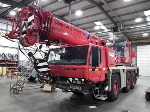 Crane manufacturer Tadano has donated an all terrain wheeled mobile crane to help with reconstruction work following the devastating Turkey-Syria earthquake.