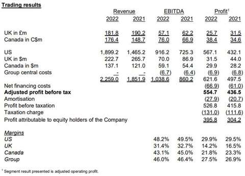 Rental-only revenue of the Sunbelt UK business rose 5% to £104 million. But the end of free mass COVID testing in April 2022 dropped revenue associated with testing sites from the Department of Health significantly. Excluding the impact of the work for the Department of Health, rental-only revenue increased 19%. Total revenue decreased 4% to £182m (2021: £190m) reflecting the volume of ancillary and sales revenue associated with the work for the Department of Health, which accounted for 16% of revenue in the quarter.