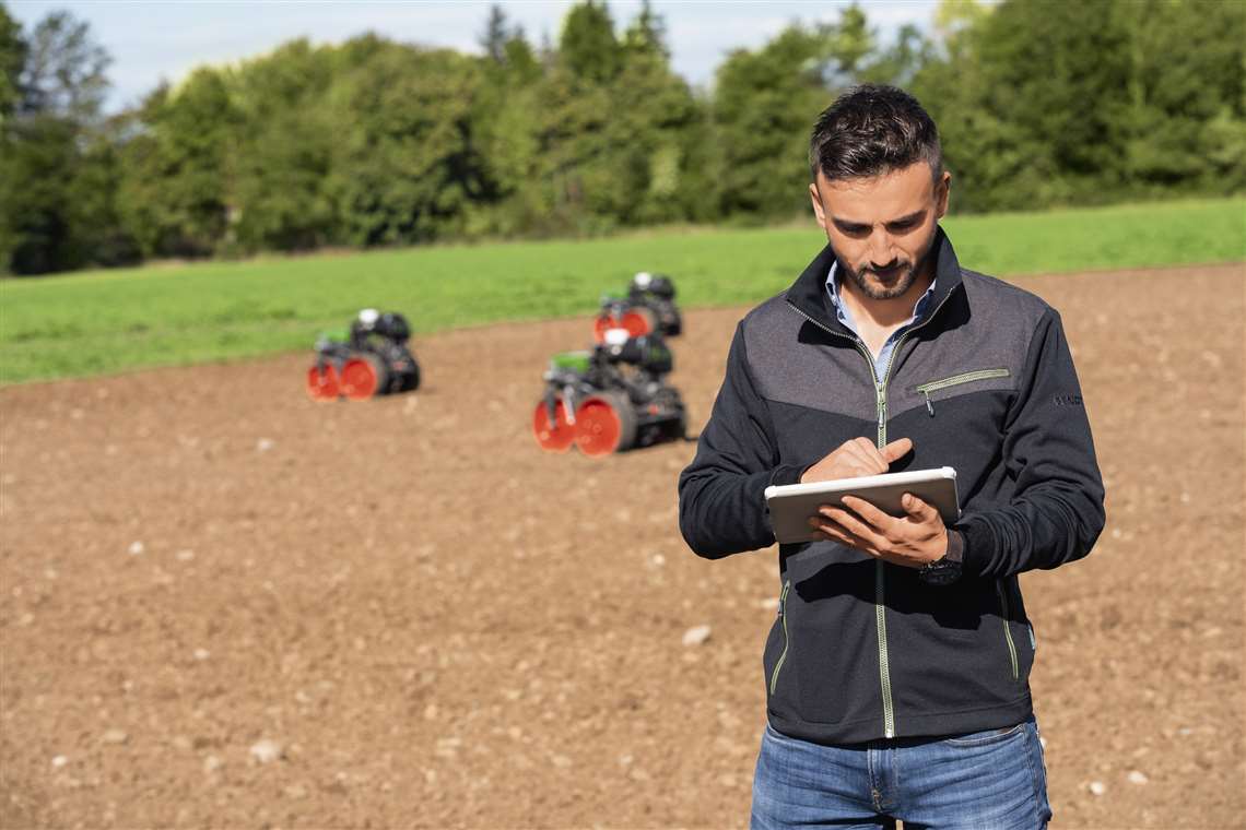 The field robot has Fendt’s VarioGuide lane guidance system and is integrated into the FendtOne control platform. The farmer can access the fleet or individual robots ion a tablet or PC.