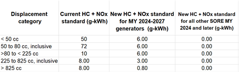 CARB’s current small off-road spark-ignited engine emissions standards and the new standards that have been approved by the agency. For model year 2028 and later, the exhaust emissions standards for generators are zero.