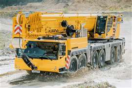 The Bielefeld branch of the Federal Agency for Technical Relief (THW) has hoisted a 46 tonne temporary prefabricated bridge over the River Erft, in North Rhine-Westphalia, Germany, using a Liebherr LTM 1650-8.1.