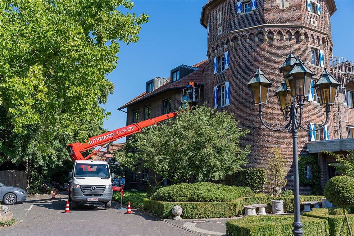 Until now, the telescopic Ecoline series was available up to 23m and articulated telescopic aerial platforms were available up to 24m. The new 270 is still available on a 3.5 tonne chassis and has been shortened by around 30cm, compared to the Ecoline 230, bringing increased manoeuvrability and less damage risk. The rear cross beam is foldable, as on Ruthmann’s Steiger TB range.