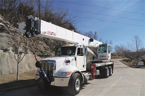 Load King/Custom Truck One Source will show its new Stinger 40-127RS (Rider Seat) that was designed with a five-section, 127-foot boom and two-piece 55-foot jib for a maximum tip height of 192 feet. The boom retains the signature Stinger keel shape for added strength and natural self-centering, and now offers the choice of an internal or externally wired anti-two-block (ATB) cable. The crane has out and down outriggers with three position charts and a maximum span of 25.5 feet to the outside of the pads.
