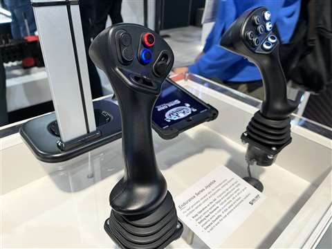 “It’s called Endurance because it helps provide more operator comfort. It allows [operators] to potentially work longer with less risk of strain,” Green said. “A lot of the joysticks that you see have multi-functions – they’re tall, they’ll have multiple rows of buttons. The problem is you have to move your hand off of [the joystick], or you’re risking thumb strain to stretch all the way up.