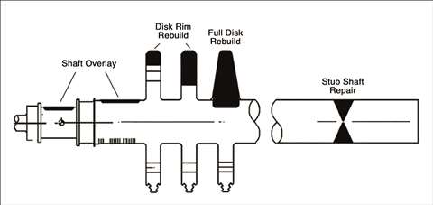Figure 2 shows common shaft repair types including overlays, buildups, and stub repair. Although stub repair would require groove welding, it would not generally be performed using LBW, since other processes have a higher deposition rate.