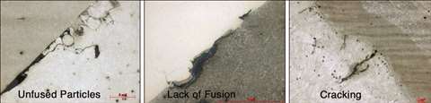Typical defects that occur in laser welding include the following, with examples shown in Figure 3, which shows defects in an LBW-P overlay.